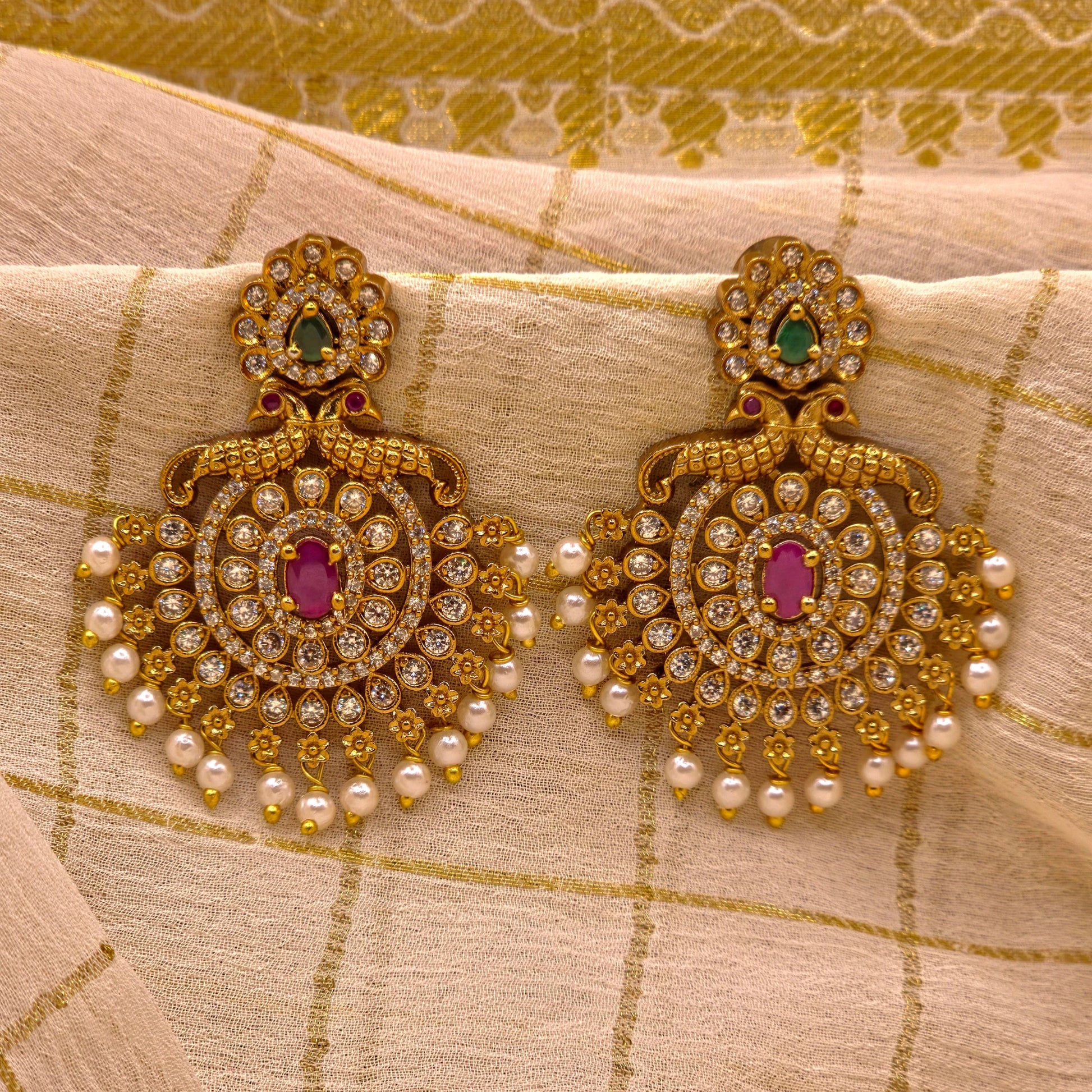 Elegant earrings crafted with sparkling stones and intricate detailing, perfect for daily wear, festive occasions, and celebrations. Designed to add a graceful touch to both traditional and contemporary looks.